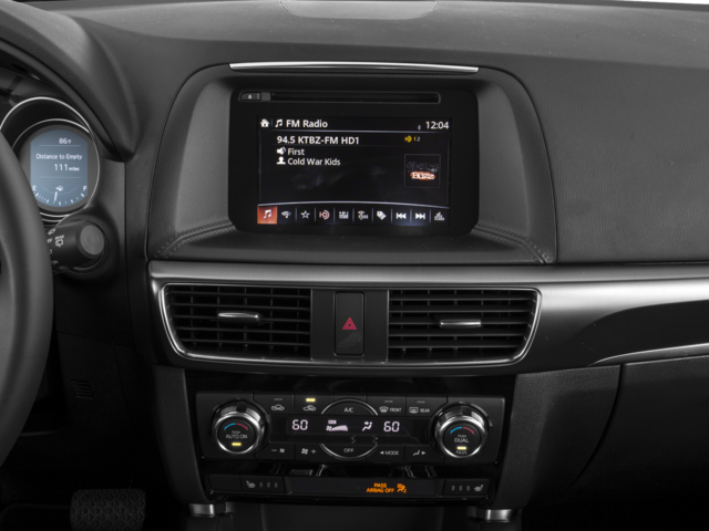 This CX-5 Grand Touring is nicely equipped with 19 x 7J Aluminum Alloy Wheels, 4-Wheel Disc Brakes, 4.62 Axle Ratio, 9 Speakers, ABS brakes, Air Conditioning, Alloy wheels, AM/FM radio: SiriusXM, Automatic temperature control, Bose 9-Speaker Audio Sound System, Brake assist, Bumpers: body-color, CD player, Delay-off headlights, Driver door bin, Driver vanity mirror, Dual front impact airbags, Dual front side impact airbags, Electronic Stability Control, Emergency communication system: Mazda Connect, Exterior Parking Camera Rear, Four wheel independent suspension, Front anti-roll bar, Front Bucket Seats, Front Center Armrest, Front dual zone A/C, Front fog lights, Front reading lights, Fully automatic headlights, Heated door mirrors, Heated front seats, Heated Front Sport Shape Seats, Illuminated entry, Leather Seat Trim, Leather Shift Knob, Low tire pressure warning, Navigation System, Occupant sensing airbag, Outside temperature display, Overhead airbag, Overhead console, Panic alarm, Passenger door bin, Passenger vanity mirror, Power door mirrors, Power driver seat, Power moonroof, Power steering, Power windows, Radio data system, Radio: AM/FM/CD/HD Modular Audio System w/Bose, Rain sensing wipers, Rear anti-roll bar, Rear reading lights, Rear seat center armrest, Rear window defroster, Rear window wiper, Remote keyless entry, Soul Red Metallic Paint, Speed control, Speed-sensing steering, Split folding rear seat, Spoiler, Steering wheel mounted audio controls, Tachometer, Telescoping steering wheel, Tilt steering wheel, Traction control, Trip computer, Turn signal indicator mirrors, and Variably intermittent wipers.