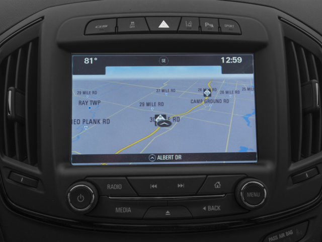 This Regal GS is nicely equipped with Driver Confidence Package #1 (Following Distance Indicator, Forward Collision Alert, Lane Departure Warning System, Rear Cross-Traffic Alert, and Side Blind Zone Alert w/Lane Change Alert), Driver Confidence Package #2 (Adaptive Full-Speed Range Cruise Control and Front Automatic Braking), Memory Package, Preferred Equipment Group 1SX (Brembo Antilock Disc Brakes w/Brake Assist, Chassis Continuously Variable Real Time Damping, Dual-Outlet Stainless-Steel Exhaust, Electric Power Steering w/Variable Assist, Enhanced Driver Instrument Information Display, Front HiPer Strut Suspension, GS-Specific Alloy Pedals, Interactive Drive Control System, Rear Spoiler, and Ultrasonic Front & Rear Parking Assist), 2-Way Adjustable Head Restraints, 2-Way Power Driver Lumbar Seat Adjuster, 4-Wheel Disc Brakes, 8-Way Power Driver Seat Adjuster, 8-Way Power Front Passenger Seat Adjuster, 9 Speakers, ABS brakes, Adaptive suspension, Air Conditioning, Alloy wheels, AM/FM radio: SiriusXM, Auto-dimming Rear-View mirror, Automatic temperature control, Bose Premium 9-Speaker Audio System Feature, Brake assist, Bumpers: body-color, CD player, Compass, Delay-off headlights, Driver door bin, Driver vanity mirror, Dual front impact airbags, Dual front side impact airbags, Electronic Stability Control, Emergency communication system: OnStar Guidance, Exterior Parking Camera Rear, Four wheel independent suspension, Front anti-roll bar, Front Bucket Seats, Front Center Armrest, Front dual zone A/C, Front Passenger 2-Way Power Lumbar Seat Adjuster, Front reading lights, Front Sport Bucket Seats, Fully automatic headlights, Garage door transmitter, Heated door mirrors, Heated Driver & Front Passenger Seats, Heated front seats, Heated steering wheel, High intensity discharge headlights: Bi-Xenon, Illuminated entry, Leather-Appointed Seat Trim, Low tire pressure warning, Navigation System, Occupant sensing airbag, Outside temperature display, Overhead airbag, Overhead console, Panic alarm, Passenger door bin, Passenger vanity mirror, Power door mirrors, Power driver seat, Power passenger seat, Power steering, Power Tilt-Sliding Moonroof w/Sunshade, Power windows, Premium audio system: IntelliLink, Radio data system, Radio: Buick IntelliLink AM/FM Stereo w/Navigation, Rear anti-roll bar, Rear reading lights, Rear seat center armrest, Rear side impact airbag, Rear window defroster, Remote keyless entry, Security system, Single-Slot CD/MP3 Audio System Feature, SiriusXM Satellite Radio, Speed control, Speed-sensing steering, Split folding rear seat, Spoiler, Sport steering wheel, Steering wheel mounted audio controls, Tachometer, Telescoping steering wheel, Tilt steering wheel, Traction control, Trip computer, Turn signal indicator mirrors, Variably intermittent wipers, and Wheels: 19 V-Spoke Alloy.