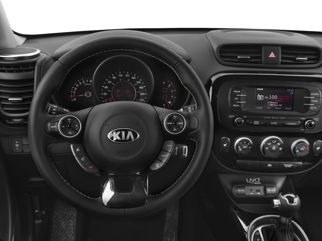 This Soul Plus is nicely equipped with Designer's Package (18 Alloy Wheels and Leather-Wrapped Steering Wheel & Gearshift Knob), 17 x 6.5J Alloy Wheels, 4-Wheel Disc Brakes, 6 Speakers, 6-Way Adjustable Driver's Seat, ABS brakes, Air Conditioning, Alloy wheels, AM/FM radio: SiriusXM, Brake assist, Bumpers: body-color, Cargo Net, Carpeted Floor Mats, Driver door bin, Driver vanity mirror, Dual front impact airbags, Dual front side impact airbags, Electronic Stability Control, Exterior Parking Camera Rear, Front anti-roll bar, Front Bucket Seats, Front Center Armrest, Front fog lights, Front reading lights, Front wheel independent suspension, Fully automatic headlights, Heated door mirrors, Illuminated entry, Low tire pressure warning, Occupant sensing airbag, Outside temperature display, Overhead airbag, Overhead console, Panic alarm, Passenger door bin, Passenger vanity mirror, Power door mirrors, Power steering, Power windows, Radio: AM/FM/MP3 Audio System, Rear seat center armrest, Rear window defroster, Rear window wiper, Remote keyless entry, Speed control, Speed-sensing steering, Split folding rear seat, Steering wheel mounted audio controls, Tachometer, Telescoping steering wheel, Tilt steering wheel, Traction control, Trip computer, Upgraded Cloth Seat Trim, and Variably intermittent wipers.
