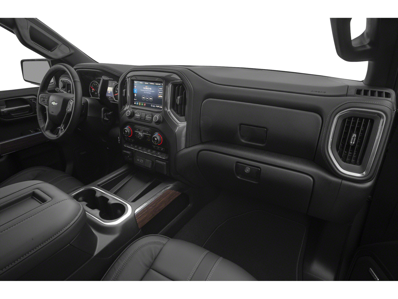 This Silverado 1500 High Country is nicely equipped with Preferred Equipment Group 3LZ (10-Way Power Driver Seat w/Lumbar, 10-Way Power Passenger Seat Adjuster w/Lumbar, 12-Volt Rear Auxiliary Power Outlet, 120-Volt Bed Mounted Power Outlet, 120-Volt Instrument Panel Power Outlet, 2nd Row Heated Outboard Seats, 4G LTE Wi-Fi Hot Spot Capable, 8 Driver Information Center, Advanced Trailering System, Auto-Dimming Inside Rear-View Mirror, Auxiliary External Transmission Oil Cooler, Bluetooth® For Phone, Chevrolet Connected Access Capable, Chevytec Spray-On Black Bedliner, Chrome Assist Steps, Chrome Grille, Chrome Recovery Hooks, Color-Keyed Carpeting Floor Covering, Compass, Deep-Tinted Glass, Driver Memory, Dual Exhaust w/Polished Outlets, Electric Rear-Window Defogger, Electrical Lock Control Steering Column, Floor Mounted Center Console, Front Carpeted Floor Mats, Front LED Fog Lamps, HD Radio, HD Rear Vision Camera, Heated Driver & Front Outboard Passenger Seats, Heated Steering Wheel, Heavy-Duty Rear Locking Differential, Hitch Guidance, Hitch Guidance w/Hitch View, Integrated Trailer Brake Controller, Keyless Open & Start, Lane Change Alert w/Side Blind Zone Alert, Leather Wrapped Steering Wheel, LED Cargo Area Lighting, Manual Tilt/Telescoping Steering Column, OnStar & Chevrolet Connected Services Capable, Outside Heated Power-Adjustable Mirrors, Painted Mirror Caps, Power Door Locks, Power Front Passenger Windows w/Express Up/Down, Power Front Windows w/Driver Express Up/Down, Power Rear Windows w/Express Down, Power Sliding Rear Window w/Rear Defogger, Rear Carpeted Floor Mats, Rear Cross Traffic Alert, Rear Dual USB Charging-Only Ports, Rear Wheelhouse Liners, Remote Vehicle Starter System, SiriusXM w/360L, Steering Wheel Audio Controls, Steering Wheel Mounted Electronic Cruise Control, Theft Deterrent System (Unauthorized Entry), Ultrasonic Front & Rear Park Assist, Universal Home Remote, Ventilated Driver & Front Passenger Seats, and Wireless Charging), Safety Package II (Adaptive Cruise Control - Camera, Automatic Emergency Braking, Following Distance Indicator, Forward Collision Alert, Front Pedestrian Braking, IntelliBeam Automatic High Beam On/Off, Lane Keep Assist w/Lane Departure Warning, and Safety Alert Seat), Technology Package (15 Diagonal Multicolor Head-Up Display, Bed View Camera, HD Surround Vision w/2 Trailer View Camera Provisions, and Rear Camera Mirror), Trailering Package, Up-Level Rear Seat w/Storage Package, Z71 Off-Road Package (High Capacity Air Filter, Hill Descent Control, and Off-Road Suspension), 170 Amps Alternator, 3.23 Rear Axle Ratio, 4-Wheel Disc Brakes, 7 Speakers, ABS brakes, Air Conditioning, Alloy wheels, AM/FM radio: SiriusXM with 360L, Apple CarPlay/Android Auto, Auto-dimming door mirrors, Auto-dimming Rear-View mirror, Automatic temperature control, Brake assist, Bumpers: body-color, Delay-off headlights, Driver door bin, Driver vanity mirror, Dual front impact airbags, Dual front side impact airbags, Electronic Stability Control, Front anti-roll bar, Front Black Bowtie Emblem (LPO), Front Bucket Seats, Front Center Armrest, Front dual zone A/C, Front fog lights, Front License Plate Kit, Front reading lights, Front wheel independent suspension, Fully automatic headlights, Garage door transmitter, Heated door mirrors, Heated front seats, Heated rear seats, Heated steering wheel, Heavy Duty Suspension, Illuminated entry, Low tire pressure warning, Memory seat, Navigation System, Occupant sensing airbag, Outside temperature display, Overhead airbag, Overhead console, Panic alarm, Passenger door bin, Passenger vanity mirror, Perforated Leather-Appointed Seat Trim, Power door mirrors, Power driver seat, Power passenger seat, Power steering, Power windows, Premium audio system: Chevrolet Infotainment 3 Premium, Radio data system, Radio: Chevrolet Infotainment 3