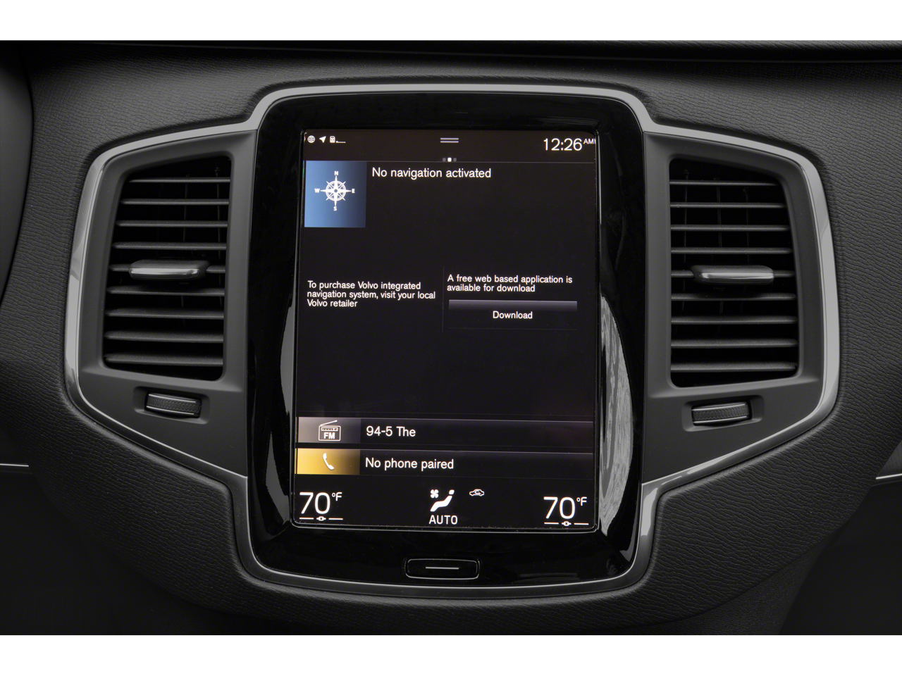 This XC90 T6 Inscription is nicely equipped with 14 Speakers, 3rd row seats: bucket, 4-Wheel Disc Brakes, ABS brakes, Air Conditioning, Alloy wheels, AM/FM radio: SiriusXM, Anti-whiplash front head restraints, Apple CarPlay/Android Auto, Auto High-beam Headlights, Auto-dimming door mirrors, Auto-dimming Rear-View mirror, Automatic temperature control, Bodyside moldings, Brake assist, Bumpers: body-color, Delay-off headlights, Driver door bin, Driver vanity mirror, Dual front impact airbags, Dual front side impact airbags, Electronic Stability Control, Emergency communication system: Volvo On-Call, Exterior Parking Camera Rear, Four wheel independent suspension, Front anti-roll bar, Front Bucket Seats, Front Center Armrest w/Storage, Front dual zone A/C, Front fog lights, Front reading lights, Fully automatic headlights, Garage door transmitter: HomeLink, Genuine wood dashboard insert, Genuine wood door panel insert, harman/kardon® Speakers, Heated & Ventilated Front Comfort Seats, Heated door mirrors, Heated front seats, Illuminated entry, Knee airbag, Leather Shift Knob, Low tire pressure warning, Memory seat, Nappa Leather Seating Surfaces, Navigation System, Occupant sensing airbag, Outside temperature display, Overhead airbag, Panic alarm, Passenger door bin, Passenger vanity mirror, Power door mirrors, Power driver seat, Power Liftgate, Power moonroof, Power passenger seat, Power steering, Power windows, Premium audio system: Sensus Connect, Radio data system, Radio: harman/kardon Premium Sound w/Sensus Nav Pro, Rain sensing wipers, Rear air conditioning, Rear anti-roll bar, Rear dual zone A/C, Rear fog lights, Rear reading lights, Rear window defroster, Rear window wiper, Remote keyless entry, Roof rack: rails only, Security system, Speed control, Speed-sensing steering, Split folding rear seat, Spoiler, Steering wheel mounted audio controls, Tachometer, Telescoping steering wheel, Tilt steering wheel, Traction control, Trip computer, Turn signal indicator mirrors, Variably intermittent wipers, Ventilated front seats, and Wheels: 20 10-Spoke Black Diamond Cut Alloy.
