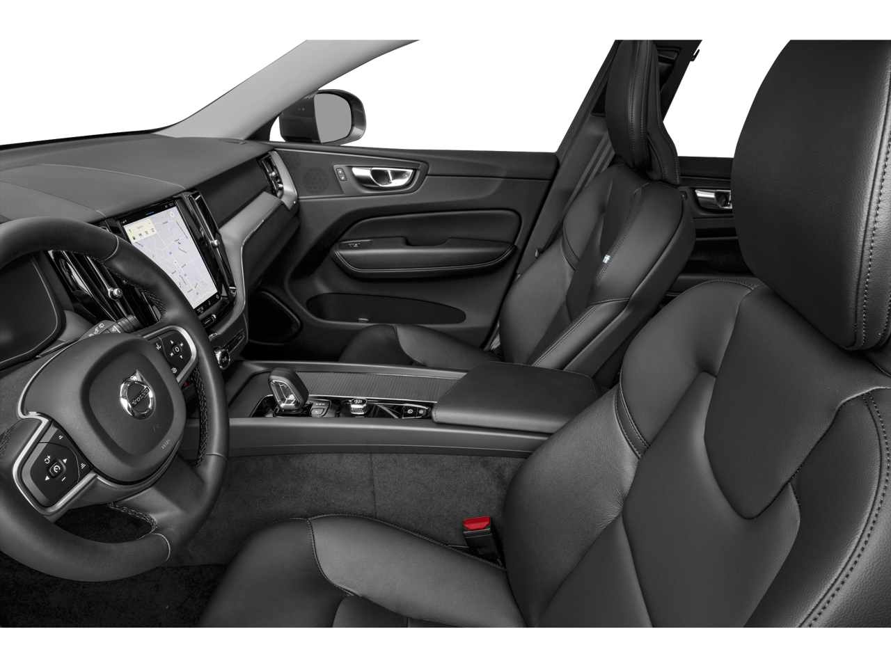 This XC60 B5 Plus Dark Theme is nicely equipped with Climate Package (Heated Rear Seats and Heated Steering Wheel), Protection Package (Cargo Tray and Rubber Floor Mats), 10 Speakers, 4-Wheel Disc Brakes, ABS brakes, Air Conditioning, Air Purifier, Alloy wheels, AM/FM radio: SiriusXM, Anti-whiplash front head restraints, Apple CarPlay, Auto High-beam Headlights, Auto-dimming door mirrors, Auto-dimming Rear-View mirror, Automatic temperature control, Brake assist, Bumpers: body-color, Delay-off headlights, Driver door bin, Driver vanity mirror, Dual front impact airbags, Dual front side impact airbags, Electronic Stability Control, Emergency communication system: Volvo Cars App w/4 Year Subscription, Exterior Parking Camera Rear, Four wheel independent suspension, Front anti-roll bar, Front Bucket Seats, Front Center Armrest, Front dual zone A/C, Front fog lights, Front reading lights, Fully automatic headlights, Garage door transmitter: HomeLink, Genuine wood console insert, Genuine wood dashboard insert, Heated door mirrors, Heated Front Bucket Seats, Heated front seats, Illuminated entry, Knee airbag, Leather Shift Knob, Leather Upholstery, Low tire pressure warning, Memory seat, Occupant sensing airbag, Outside temperature display, Overhead airbag, Panic alarm, Passenger door bin, Passenger vanity mirror, Power door mirrors, Power driver seat, Power moonroof, Power Operated Tailgate, Power passenger seat, Power steering, Power windows, Radio data system, Radio: harman/kardon Premium Sound, Radio: High Performance Audio System, Rain sensing wipers, Rear anti-roll bar, Rear fog lights, Rear reading lights, Rear seat center armrest, Rear window defroster, Rear window wiper, Remote keyless entry, Security system, Speed control, Split folding rear seat, Spoiler, Steering wheel mounted audio controls, Tachometer, Telescoping steering wheel, Tilt steering wheel, Traction control, Trip computer, Turn signal indicator mirrors, Variably intermittent wipers, Wheels: 19 5-V Spoke Black Diamond Cut Alloy, and Wheels: 20 5-Y Spoke Black Diamond Cut Alloy.