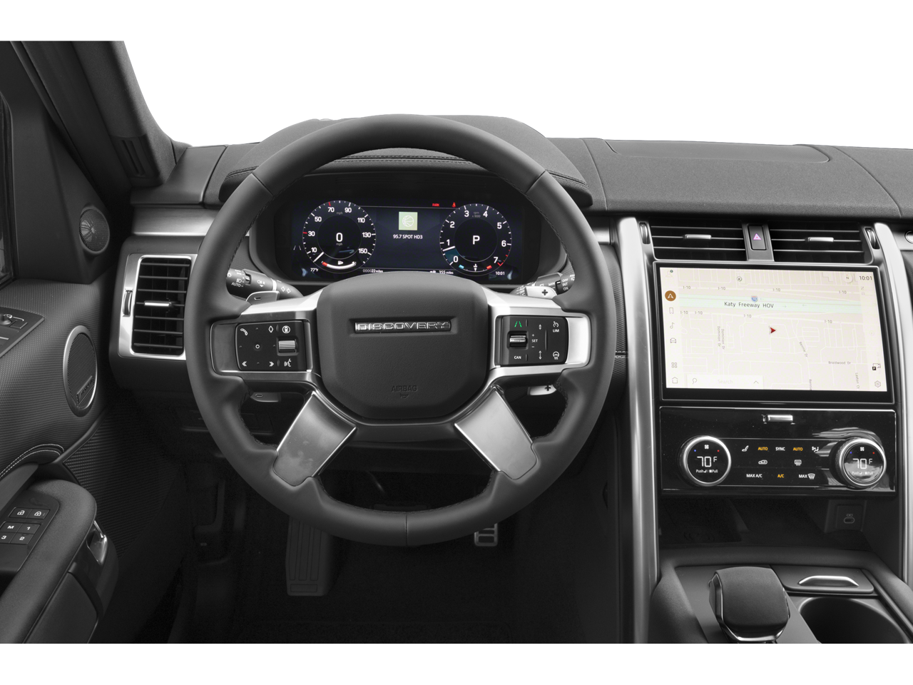 This Discovery Dynamic SE is nicely equipped with 13 Speakers, 18-Way Heated Electric Front Seats, 3.55 Axle Ratio, 3rd row seats: split-bench, 4-Wheel Disc Brakes, ABS brakes, Air Conditioning, Alloy wheels, AM/FM radio: SiriusXM, Apple CarPlay & Android Auto, Auto High-beam Headlights, Auto tilt-away steering wheel, Auto-dimming door mirrors, Auto-dimming Rear-View mirror, Auto-leveling suspension, Automatic temperature control, Brake assist, Bumpers: body-color, Compass, Delay-off headlights, Driver door bin, Driver vanity mirror, Driver's Seat Mounted Armrest, Dual front impact airbags, Dual front side impact airbags, DuoLeather Seat Trim, Electronic Stability Control, Emergency communication system, Exterior Parking Camera Rear, Four wheel independent suspension, Front anti-roll bar, Front Bucket Seats, Front Center Armrest, Front dual zone A/C, Front reading lights, Fully automatic headlights, Garage door transmitter: HomeLink, Heated door mirrors, Heated front seats, Heated steering wheel, Illuminated entry, Leather Shift Knob, Low tire pressure warning, Memory seat, Navigation system: Connected Navigation PIVI Pro, Occupant sensing airbag, Outside temperature display, Overhead airbag, Overhead console, Panic alarm, Passenger door bin, Passenger seat mounted armrest, Passenger vanity mirror, Power adjustable front head restraints, Power door mirrors, Power driver seat, Power Liftgate, Power moonroof, Power passenger seat, Power steering, Power windows, Radio data system, Radio: Meridian Sound System, Rain sensing wipers, Rear air conditioning, Rear anti-roll bar, Rear fog lights, Rear reading lights, Rear seat center armrest, Rear window defroster, Rear window wiper, Remote keyless entry, Security system, Speed control, Speed-sensing steering, Speed-Sensitive Wipers, Split folding rear seat, Spoiler, Steering wheel memory, Steering wheel mounted audio controls, Tachometer, Telescoping steering wheel, Tilt steering wheel, Traction control, Trip computer, Turn signal indicator mirrors, Variably intermittent wipers, Weather band radio, and Wheels: 21 Gloss Black.
