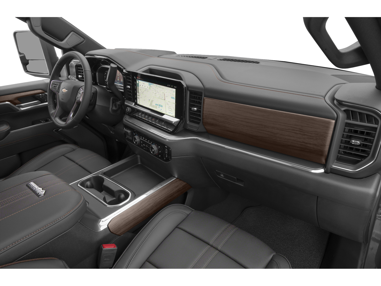 This Silverado 2500HD High Country is nicely equipped with Gooseneck/5th Wheel Prep Package (Black Chevytec Spray-on Bedliner), High Country Premium Package (Power Sunroof), Preferred Equipment Group 3LZ (120-Volt Bed Mounted Power Outlet, 120-Volt Interior Power Outlet, 170 Amp Alternator, 6 Rectangular Chromed Tubular Assist Steps, Auto-Dimming Inside Rear-View Mirror, Bed View Camera with Two Trailer Camera Provisions, Bluetooth® For Phone, Chevrolet Connected Access Capable, Chrome Door Handles, Chrome Mirror Caps, Color-Keyed Carpeting Floor Covering, Compass, Deep-Tinted Glass, Durabed Pickup Bed, Electric Rear-Window Defogger, Front Bucket Seats, Front Carpeted Floor Mats, Front Chrome Recovery Hooks, Front LED Fog Lamps, Front Rain-Sensing Wipers, Heated 2nd Row Outboard Seats, Heated Steering Wheel, Hitch Guidance with Hitch View, in-Vehicle Trailering App System, Keyless Open and Start, LED Cargo Area Lighting, Manual Tilt and Telescoping Steering Column, OnStar Services Capable, Perforated Leather Seat Trim, Polished Exhaust Tip, Power Door Locks, Power Front Windows with Driver Express Up/Down, Power Front Windows with Passenger Express Up/Down, Power Rear Windows with Express Down, Power Sliding Rear Window with Defogger, Power Up/Down Tailgate Function with Power Lock and Release, Push Button Start, Rear Carpeted Floor Mats, Rear Cross Traffic Alert, Rear Wheelhouse Liners, Remote Vehicle Starter System, SiriusXM with 360L Trial Subscription, Standard Tailgate, Steering Wheel Audio Controls, Trailer Camera Provisions, Ultrasonic Front and Rear Park Assist, Unauthorized Entry Theft-Deterrent System, Universal Home Remote, Wheels: 20 8-Spoke Polished, Wi-Fi Hotspot Capable, Wireless Charging, Wireless Phone Projection, and Wrapped Steering Wheel), Suspension Package, Technology Package (15 Diagonal Multicolor Head-Up Display and Rear Camera Mirror), Up-Level Rear Seat with Storage Package, Z71 Off-Road Package (Hill Descent Control and Off-Road Suspension), 10-Way Power Driver Seat Adjuster with Lumbar, 10-Way Power Passenger Seat Adjuster with Lumbar, 220 Amp Alternator, 4-Wheel Disc Brakes, 7 Speakers, 720 Cold-Cranking Amps Heavy-Duty Battery, ABS brakes, Air Conditioning, Alloy wheels, AM/FM radio: SiriusXM with 360L, Apple CarPlay/Android Auto, Auto High-beam Headlights, Auto-dimming door mirrors, Auto-dimming Rear-View mirror, Automatic temperature control, Bodyside moldings, BOSE Premium 7-Speaker Sound System, Brake assist, Bumpers: body-color, Delay-off headlights, Driver door bin, Driver Memory, Driver vanity mirror, Dual front impact airbags, Dual front side impact airbags, Electronic Stability Control, Emergency communication system: OnStar, Engine Block Heater, Exhaust Brake, EZ Lift Power Lock and Release Tailgate, Floor-Mounted Center Console, Front anti-roll bar, Front Center Armrest, Front dual zone A/C, Front fog lights, Front License Plate Kit, Front reading lights, Front wheel independent suspension, Fully automatic headlights, Garage door transmitter, Genuine wood console insert, Genuine wood dashboard insert, Genuine wood door panel insert, Heated door mirrors, Heated Driver and Front Outboard Passenger Seating, Heated front seats, Heated rear seats, Heated steering wheel, Illuminated entry, Low tire pressure warning, Memory seat, Multi-Flex Tailgate, Occupant sensing airbag, Outside temperature display, Overhead airbag, Overhead console, Panic alarm, Passenger door bin, Passenger vanity mirror, Power door mirrors, Power driver seat, Power passenger seat, Power steering, Power windows, Premium audio system: Chevrolet Infotainment 3 Premium, Radio: Chevrolet Infotainment 3 Premium System, Rain sensing wipers, Rear reading lights, Rear seat center armrest, Rear step bumper, Rear window defroster, Remote keyless entry, Security system, Speed control, Speed-sensing steering, Split folding rear seat, Ste