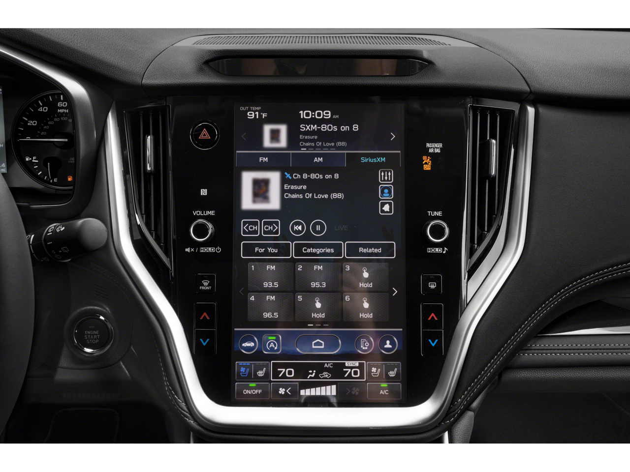 This Outback Touring is nicely equipped with Standard Model, 12 Speakers, 4-Wheel Disc Brakes, ABS brakes, Air Conditioning, All-Weather Floor Liners, Alloy wheels, AM/FM radio: SiriusXM with 360L, Apple CarPlay & Android Auto, Auto High-beam Headlights, Auto-dimming Rear-View mirror, Automatic temperature control, Brake assist, Bumpers: body-color, Compass, Driver door bin, Driver vanity mirror, Dual front impact airbags, Dual front side impact airbags, Electronic Stability Control, Emergency communication system: MySubaru Safety (3-year free trial), Exterior Parking Camera Rear, Four wheel independent suspension, Front anti-roll bar, Front Bucket Seats, Front Center Armrest w/Storage, Front dual zone A/C, Front fog lights, Front reading lights, Fully automatic headlights, Garage door transmitter: HomeLink, harman/kardon® Speakers, Heated & Ventilated Front Bucket Seats, Heated door mirrors, Heated front seats, Heated rear seats, Heated steering wheel, HVAC memory, Illuminated entry, Knee airbag, Leather Shift Knob, Leather steering wheel, LED Upgrade, Low tire pressure warning, Memory seat, Navigation system: TomTom Navigation w/what3words, Occupant sensing airbag, Outside temperature display, Overhead airbag, Overhead console, Panic alarm, Passenger door bin, Passenger vanity mirror, Perforated Nappa Leather-Trimmed Upholstery, Power door mirrors, Power driver seat, Power Liftgate, Power moonroof, Power passenger seat, Power steering, Power windows, Radio: Subaru 11.6 Multimedia System w/Navigation, Rear anti-roll bar, Rear seat center armrest, Rear window defroster, Rear window wiper, Remote CD player, Remote keyless entry, Roof rack, Security system, Speed control, Speed-sensing steering, Splash Guards, Split folding rear seat, Spoiler, Steering wheel mounted audio controls, Tachometer, Telescoping steering wheel, Tilt steering wheel, Traction control, Trip computer, Turn signal indicator mirrors, USB Charging Cable Set, Variably intermittent wipers, Ventilated front seats, and Wheels: 18 x 7J Black Aluminum-Alloy.