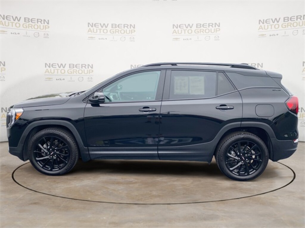 This Terrain SLE is nicely equipped with Elevation Edition (Black GMC Center Caps w/Red GMC Lettering, Black Mirror Caps, Darkened Front Grille, Roof-Mounted Luggage Rack Side Rails, and Wheels: 19" Gloss Black Aluminum), License Plate Front Mounting Package, Preferred Equipment Group 3SA, Side Blind Zone & Rear Cross Traffic (Lane Change Alert w/Side Blind Zone Alert and Rear Cross-Traffic Alert), Terrain Pro Safety Plus (Adaptive Cruise Control, Outside Heated Power-Adjustable Mirrors, Rear Park Assist, and Safety Alert Seat), 2 USB Data Ports w/Auxiliary Input Jack, 3.47 Axle Ratio, 4-Way Manual Driver's Seat, 4-Way Manual Front Passenger Seat, 4-Wheel Disc Brakes, 4.2" Multi-Color Driver Information Screen, 6 Speakers, 6-Speaker Audio System Feature, ABS brakes, Air Conditioning, Alloy wheels, AM/FM radio: SiriusXM, Auto High-beam Headlights, Auto-dimming Rear-View mirror, Automatic temperature control, Bluetooth® For Phone, Brake assist, Bumpers: body-color, Compass, Delay-off headlights, Driver door bin, Driver vanity mirror, Dual front impact airbags, Dual front side impact airbags, Electronic Stability Control, Emergency communication system: OnStar and GMC connected services capable, Four wheel independent suspension, Front anti-roll bar, Front Bucket Seats, Front Center Armrest, Front reading lights, Fully automatic headlights, Heated door mirrors, Illuminated entry, Low tire pressure warning, Occupant sensing airbag, Outside temperature display, Overhead airbag, Overhead console, Panic alarm, Passenger door bin, Passenger vanity mirror, Power door mirrors, Power steering, Power windows, Premium Cloth Seat Trim, Radio data system, Radio: GMC Infotainment Audio System w/7" Display, Rear anti-roll bar, Rear seat center armrest, Rear window defroster, Rear window wiper, Remote keyless entry, Security system, SiriusXM Radio, Speed control, Speed-sensing steering, Split folding rear seat, Spoiler, Steering wheel mounted audio controls, Tachometer, Telescoping steering wheel, Tilt steering wheel, Traction control, Trip computer, Variably intermittent wipers, Wheels: 17" x 7" Silver Painted Aluminum, and Wireless Apple CarPlay/Wireless Android Auto.