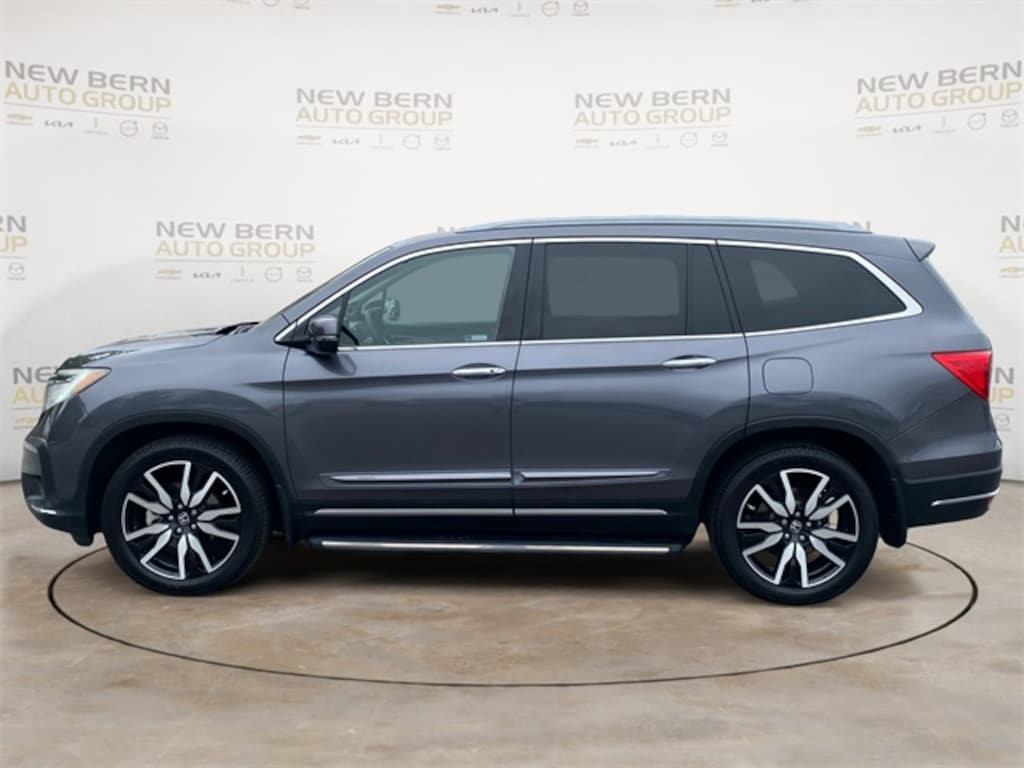 This Pilot Elite is nicely equipped with 10 Speakers, 3rd row seats: split-bench, 4-Wheel Disc Brakes, 4.334 Axle Ratio, A/V remote: CabinControl, ABS brakes, Air Conditioning, Alloy wheels, AM/FM radio: SiriusXM, Apple CarPlay/Android Auto, Auto High-beam Headlights, Auto-dimming door mirrors, Auto-dimming Rear-View mirror, Automatic temperature control, Blind Spot Information (BSI) System warning, Brake assist, Bumpers: body-color, Compass, Delay-off headlights, Driver door bin, Driver vanity mirror, Dual front impact airbags, Dual front side impact airbags, Electronic Stability Control, Emergency communication system: HondaLink, Exterior Parking Camera Rear, Forward collision: Collision Mitigation Braking System (CMBS) + FCW mitigation, Four wheel independent suspension, Front anti-roll bar, Front Bucket Seats, Front Center Armrest, Front dual zone A/C, Front fog lights, Front reading lights, Fully automatic headlights, Garage door transmitter: HomeLink, Headphones, Heated & Ventilated Front Bucket Seats, Heated door mirrors, Heated front seats, Heated rear seats, Heated steering wheel, Honda Satellite-Linked Navigation System, Illuminated entry, Lane departure: Lane Keeping Assist System (LKAS) active, Low tire pressure warning, Memory seat, Navigation system: Honda Satellite-Linked Navigation System, Occupant sensing airbag, Outside temperature display, Overhead airbag, Overhead console, Panic alarm, Passenger door bin, Passenger vanity mirror, Perforated Leather Seat Trim, Power door mirrors, Power driver seat, Power Liftgate, Power moonroof, Power passenger seat, Power steering, Power windows, Radio data system, Radio: 590-Watt Premium Audio System, Rain sensing wipers, Rear air conditioning, Rear anti-roll bar, Rear audio controls, Rear reading lights, Rear window defroster, Rear window wiper, Reclining 3rd row seat, Remote keyless entry, Roof rack: rails only, Security system, Speed control, Speed-sensing steering, Speed-Sensitive Wipers, Split folding rear seat, Spoiler, Steering wheel mounted audio controls, Tachometer, Telescoping steering wheel, Tilt steering wheel, Traction control, Trip computer, Turn signal indicator mirrors, Variably intermittent wipers, Ventilated front seats, and Wheels: 20" Machine-Finished Alloy.