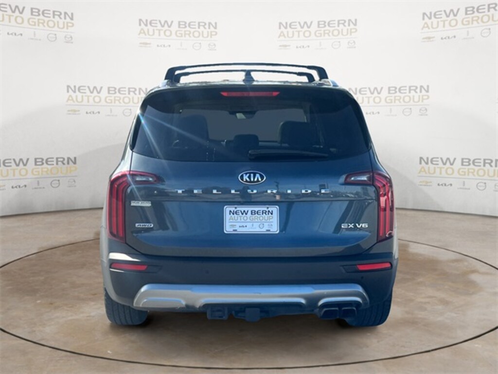This Telluride EX is nicely equipped with 3.648 Axle Ratio, 3rd row seats: split-bench, 4-Wheel Disc Brakes, 6 Speakers, ABS brakes, Air Conditioning, Alloy wheels, AM/FM radio: SiriusXM, Apple CarPlay & Android Auto, Auto-dimming Rear-View mirror, Automatic temperature control, Brake assist, Bumpers: body-color, Carpeted Floor Mats, Compass, Cross Bars, Delay-off headlights, Driver door bin, Driver vanity mirror, Dual front impact airbags, Dual front side impact airbags, Electronic Stability Control, Emergency communication system: 911 Connect, Four wheel independent suspension, Front anti-roll bar, Front Bucket Seats, Front Center Armrest, Front dual zone A/C, Front reading lights, Fully automatic headlights, Heated & Ventilated Front Bucket Seats, Heated door mirrors, Heated front seats, Illuminated entry, Knee airbag, Leather Shift Knob, Leather steering wheel, Leather-Trimmed Upholstery, Low tire pressure warning, Navigation System, Occupant sensing airbag, Outside temperature display, Overhead airbag, Overhead console, Panic alarm, Passenger door bin, Passenger vanity mirror, Power door mirrors, Power driver seat, Power Liftgate, Power moonroof, Power passenger seat, Power steering, Power windows, Radio data system, Radio: AM/FM/MP3/SiriusXM Audio System, Rear air conditioning, Rear anti-roll bar, Rear audio controls, Rear reading lights, Rear seat center armrest, Rear window defroster, Rear window wiper, Reclining 3rd row seat, Remote keyless entry, Roof rack: rails only, Security system, Speed control, Speed-sensing steering, Split folding rear seat, Spoiler, Steering wheel mounted audio controls, Tachometer, Telescoping steering wheel, Tilt steering wheel, Tow Hitch w/Harness, Traction control, Trip computer, Turn signal indicator mirrors, Variably intermittent wipers, Ventilated front seats, and Wheels: 7.5" x 18" Machined Finish Alloy.