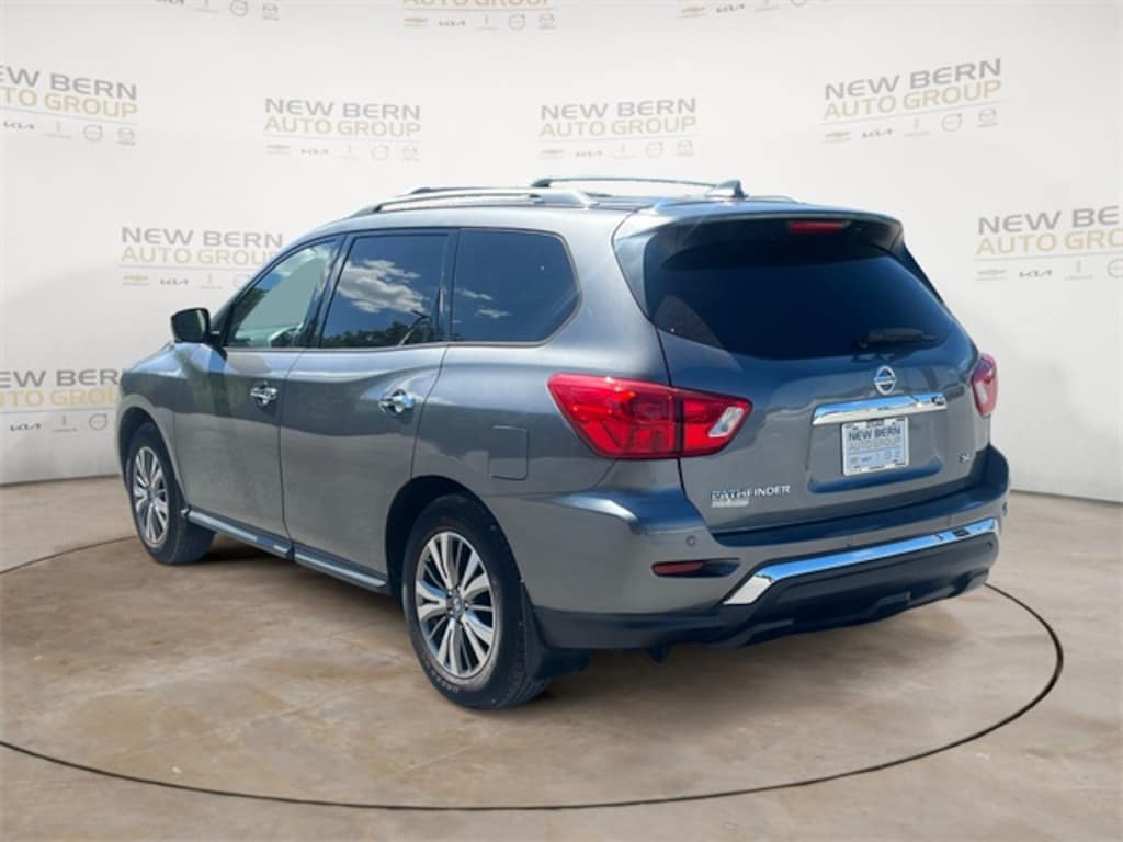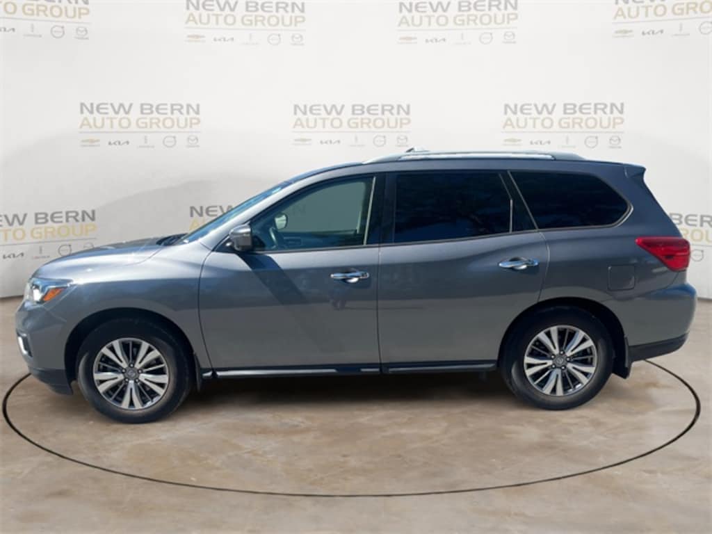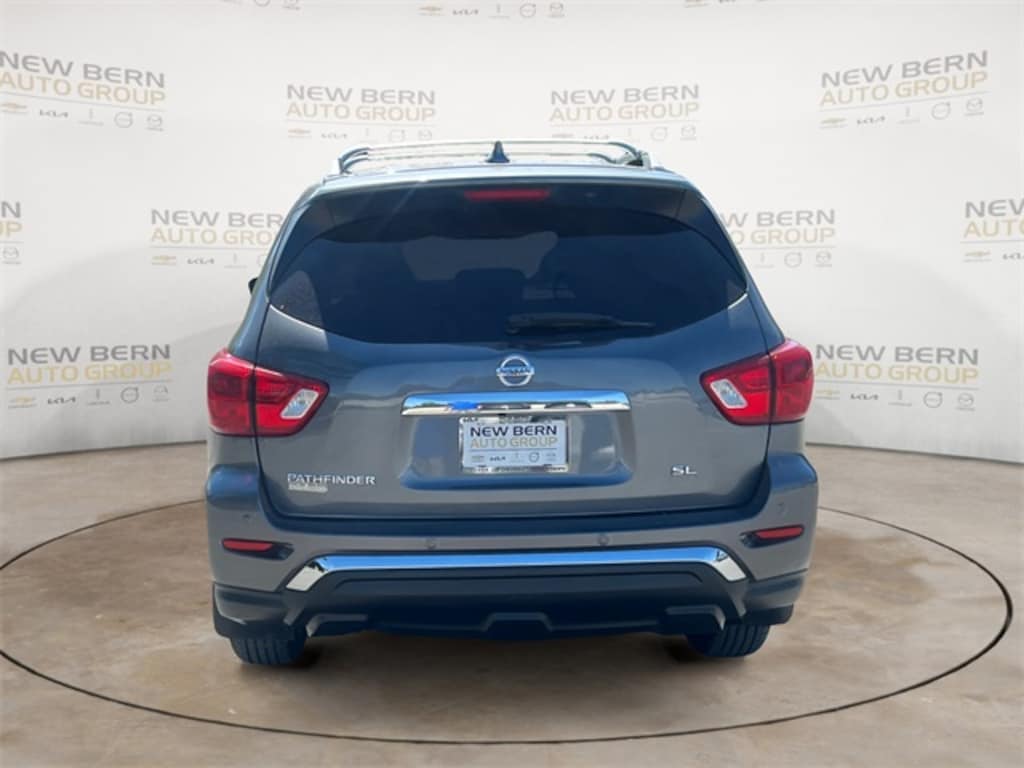 This Pathfinder SL is nicely equipped with 3rd row seats: bench, 4-Wheel Disc Brakes, 5.25 Axle Ratio, 6 Speakers, ABS brakes, Air Conditioning, Alloy wheels, AM/FM radio: SiriusXM, AM/FM/CD Audio System, Auto-dimming Rear-View mirror, Automatic temperature control, Black Mold-in-Color Splash Guards, Blind Spot Warning, Bose Premium Audio System, Brake assist, Bumpers: body-color, Carpeted Floor Mats (4-pc Set), CD player, Compass, Cross Bars, Delay-off headlights, Driver door bin, Driver vanity mirror, Dual front impact airbags, Dual front side impact airbags, Electronic Stability Control, Emergency communication system: NissanConnect Services, Four wheel independent suspension, Front anti-roll bar, Front Bucket Seats, Front Center Armrest, Front dual zone A/C, Front fog lights, Front reading lights, Fully automatic headlights, Garage door transmitter: HomeLink, Heated door mirrors, Heated Front Bucket Seats, Heated front seats, Heated rear seats, Heated steering wheel, Illuminated entry, Leather Seating Surfaces, Leather Shift Knob, Leather steering wheel, Low tire pressure warning, Memory seat, Navigation System, NissanConnect w/Navigation & Services, Occupant sensing airbag, Outside temperature display, Overhead airbag, Overhead console, Panic alarm, Passenger door bin, Passenger vanity mirror, Power door mirrors, Power driver seat, Power Liftgate, Power passenger seat, Power steering, Power windows, Radio data system, Rear air conditioning, Rear anti-roll bar, Rear Parking Sensors, Rear reading lights, Rear seat center armrest, Rear window defroster, Rear window wiper, Reclining 3rd row seat, Remote keyless entry, Roof rack: rails only, Security system, SiriusXM Traffic, Speed control, Speed-sensing steering, Speed-Sensitive Wipers, Split folding rear seat, Spoiler, Steering wheel mounted audio controls, Tachometer, Telescoping steering wheel, Tilt steering wheel, Traction control, Trip computer, Turn signal indicator mirrors, Variably intermittent wipers, and Wheels: 18" x 7.5 J Machined Aluminum-Alloy.