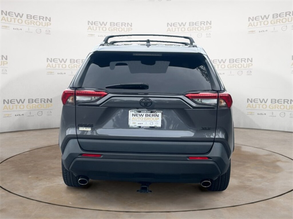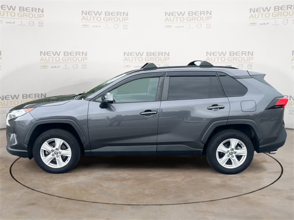 This RAV4 XLE is nicely equipped with 4-Wheel Disc Brakes, 6 Speakers, ABS brakes, Air Conditioning, Alloy wheels, AM/FM radio: SiriusXM, AM/FM Stereo, Apple CarPlay/Android Auto, Auto High-beam Headlights, Automatic temperature control, Axle Ratio: 3.177, Brake assist, Bumpers: body-color, Delay-off headlights, Driver door bin, Driver vanity mirror, Dual front impact airbags, Dual front side impact airbags, Electronic Stability Control, Emergency communication system, Exterior Parking Camera Rear, Fabric Seat Trim, Four wheel independent suspension, Front anti-roll bar, Front Bucket Seats, Front Center Armrest, Front dual zone A/C, Front fog lights, Front reading lights, Fully automatic headlights, Heated door mirrors, Illuminated entry, Knee airbag, Low tire pressure warning, Occupant sensing airbag, Outside temperature display, Overhead airbag, Overhead console, Panic alarm, Passenger door bin, Passenger vanity mirror, Power door mirrors, Power driver seat, Power steering, Power windows, Radio data system, Rear anti-roll bar, Rear seat center armrest, Rear window defroster, Rear window wiper, Remote keyless entry, Roof rack: rails only, Speed control, Speed-sensing steering, Split folding rear seat, Spoiler, Steering wheel mounted audio controls, Tachometer, Telescoping steering wheel, Tilt steering wheel, Traction control, Trip computer, Turn signal indicator mirrors, Variably intermittent wipers, and Wheels: 17" 5-Spoke Silver Alloy.