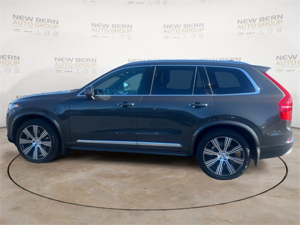This XC90 Recharge Plug-In Hybrid T8 Inscription 7 Passenger is nicely equipped with Advanced Package (360 Surround View Camera, Air Purifier, and Graphical Head-Up Display), Climate Package (Headlight High Pressure Cleaning, Heated Rear Seats, and Heated Steering Wheel), Protection Package Premier (Bumper Cover, Cargo Tray, License Plate Frame, Rubber Floor Mats, and Wheel Locks), 14 Speakers, 3rd row seats: bucket, 4-Corner Air Suspension, 4-Wheel Disc Brakes, ABS brakes, Air Conditioning, Alloy wheels, AM/FM radio: SiriusXM, Anti-whiplash front head restraints, Apple CarPlay/Android Auto, Auto High-beam Headlights, Auto-dimming door mirrors, Auto-dimming Rear-View mirror, Automatic temperature control, Bodyside moldings, Bowers & Wilkins Premium Sound, Brake assist, Bumpers: body-color, Delay-off headlights, Driver door bin, Driver vanity mirror, Dual front impact airbags, Dual front side impact airbags, Electronic Stability Control, Emergency communication system: Volvo Cars App w/4 Year Subscription, Exterior Parking Camera Rear, Four wheel independent suspension, Front & Rear Mud Flaps, Front anti-roll bar, Front Bucket Seats, Front Center Armrest w/Storage, Front dual zone A/C, Front Heated & Ventilated Bucket Seats, Front reading lights, Fully automatic headlights, Garage door transmitter: HomeLink, Genuine wood dashboard insert, Genuine wood door panel insert, harman/kardon® Speakers, Heated door mirrors, Heated front seats, Illuminated entry, Knee airbag, Low tire pressure warning, Luggage Cover, Memory seat, Navigation system: Sensus Navigation, Occupant sensing airbag, Outside temperature display, Overhead airbag, Panic alarm, Park Assist Pilot, Passenger door bin, Passenger vanity mirror, Perforated Nappa Leather Upholstery, Power door mirrors, Power driver seat, Power moonroof, Power passenger seat, Power steering, Power windows, Premium audio system: Sensus Connect, Radio data system, Radio: harman/kardon Premium Audio System, Rain sensing wipers, Rear air conditioning, Rear anti-roll bar, Rear dual zone A/C, Rear fog lights, Rear reading lights, Rear seat center armrest, Rear window defroster, Rear window wiper, Remote keyless entry, Security system, Speed control, Speed-sensing steering, Split folding rear seat, Spoiler, Steering wheel mounted audio controls, Tachometer, Telescoping steering wheel, Tilt steering wheel, Traction control, Trip computer, Turn signal indicator mirrors, Variably intermittent wipers, Ventilated front seats, Wheels: 20" 10-Spoke Black Diamond Cut Alloy, and Wheels: 21" 8-Multi Spoke Black Diamond Cut Alloy.