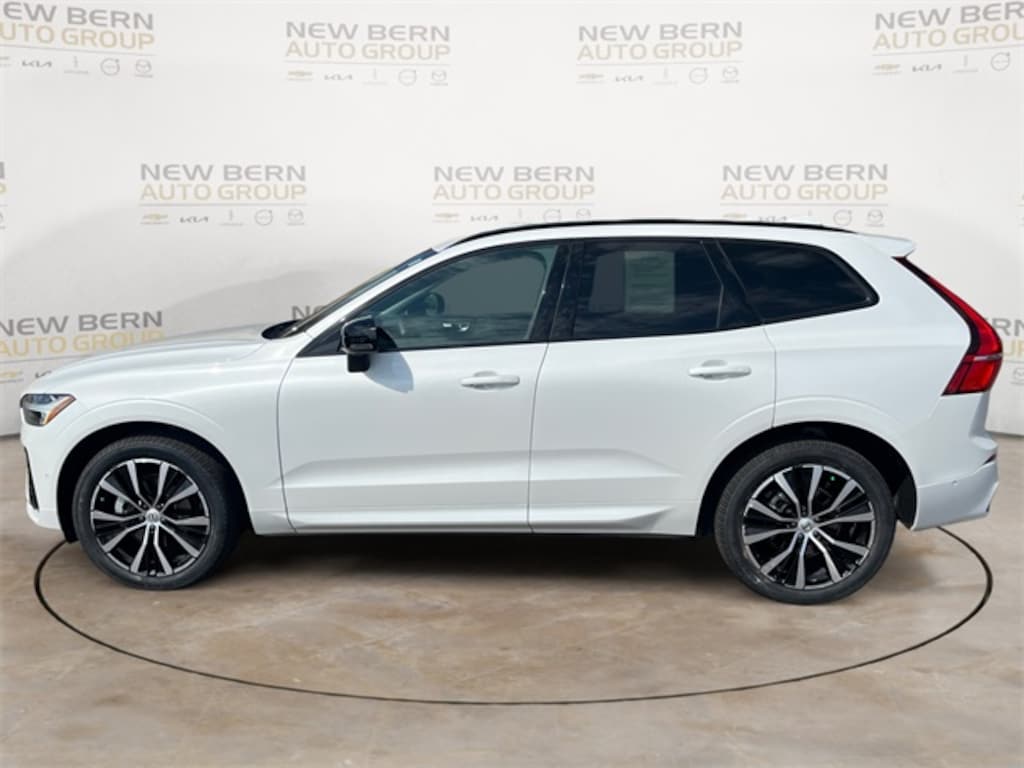 This XC60 B5 Plus Dark Theme is nicely equipped with Climate Package (Heated Rear Seats and Heated Steering Wheel), 10 Speakers, 4-Wheel Disc Brakes, ABS brakes, Air Conditioning, Alloy wheels, AM/FM radio: SiriusXM, Anti-whiplash front head restraints, Apple CarPlay, Auto High-beam Headlights, Auto-dimming door mirrors, Auto-dimming Rear-View mirror, Automatic temperature control, Brake assist, Bumper Cover - Stainless Steel, Bumpers: body-color, Delay-off headlights, Driver door bin, Driver vanity mirror, Dual front impact airbags, Dual front side impact airbags, Electronic Stability Control, Emergency communication system: Volvo Cars App w/4 Year Subscription, Exterior Parking Camera Rear, Four wheel independent suspension, Front anti-roll bar, Front Bucket Seats, Front Center Armrest, Front dual zone A/C, Front fog lights, Front reading lights, Fully automatic headlights, Garage door transmitter: HomeLink, Genuine wood console insert, Genuine wood dashboard insert, harman/kardon Premium Sound, Heated door mirrors, Heated Front Bucket Seats, Heated front seats, Illuminated entry, Knee airbag, Leather Shift Knob, Leather Upholstery, Low tire pressure warning, Luggage Cover, Memory seat, Occupant sensing airbag, Outside temperature display, Overhead airbag, Panic alarm, Passenger door bin, Passenger vanity mirror, Power door mirrors, Power driver seat, Power moonroof, Power Operated Tailgate, Power passenger seat, Power steering, Power windows, Radio data system, Radio: High Performance Audio System, Rain sensing wipers, Rear anti-roll bar, Rear fog lights, Rear reading lights, Rear seat center armrest, Rear window defroster, Rear window wiper, Remote keyless entry, Security system, Speed control, Split folding rear seat, Spoiler, Steering wheel mounted audio controls, Tachometer, Telescoping steering wheel, Tilt steering wheel, Traction control, Trip computer, Turn signal indicator mirrors, Variably intermittent wipers, Wheels: 19" 5-V Spoke Black Diamond Cut Alloy, and Wheels: 20" 5-Y Spoke Black Diamond Cut Alloy.